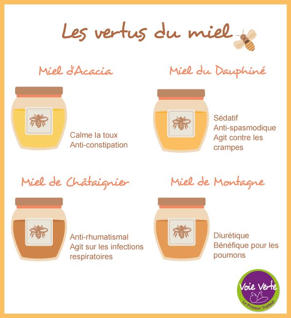 Surnommé nectar des dieux, le miel a non seulement bon goût mais possède également de nombreuses vertus utilisées depuis des siècles. Le miel n’est ni transformé ni modifié, c’est uniquement le fruit du travail des abeilles. Il est composé de sucres mais aussi de nombreux sels de vitamines.