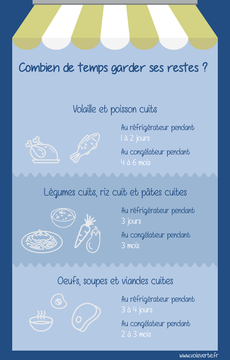 L’infographie ci-dessous vous indique quand manger vos restes que vous conservez au frigo ou au congélateur.