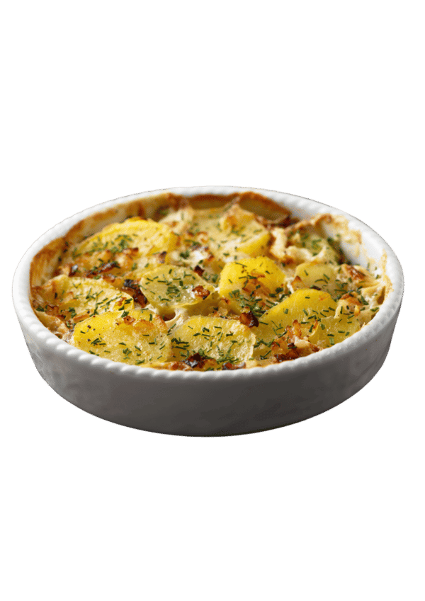 Pommes de terre 54%, crème (LAIT), comté (LAIT), ail, sel, noix de muscade, poivre