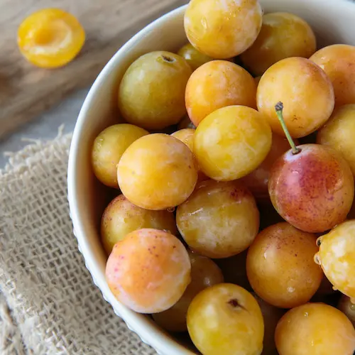 Petite prune dorée, la mirabelle est disponible pour une très courte durée. Quand on en croise, il ne faut pas hésiter longtemps ! Nous venant tout droit d'Alsace et de Lorraine, la mirabelle est concentrée en sucre. Un petit plaisir gourmand à s'accorder tous les ans.